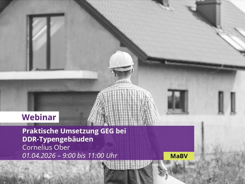 Praktische Umsetzung GEG bei DDR-Typengebäuden – Inhalte: Der DDR-Typenbau ist immer ein besonderes Pflaster und wird mit den Herausforderungen des GEG noch einmal besonders gefordert. Dieses Online-Seminar soll dazu dienen aufzuzeigen, wie eine förderoptimierte Beratung und…