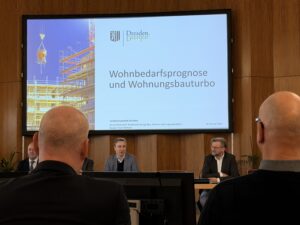 Im Rathaus Dresden wurde am 19. Januar auf Einladung von Baubürgermeister Stephan Kühn vorgestellt, wie die Landeshauptstadt von Sachsen den Bauturbo zünden will. Die seit 30. Oktober entsprechend angepassten rechtlichen Rahmenbedingungen lassen den Kommunen hier deutlich mehr Ermessen und Möglichkeiten, insbesondere in planerischer Hinsicht.