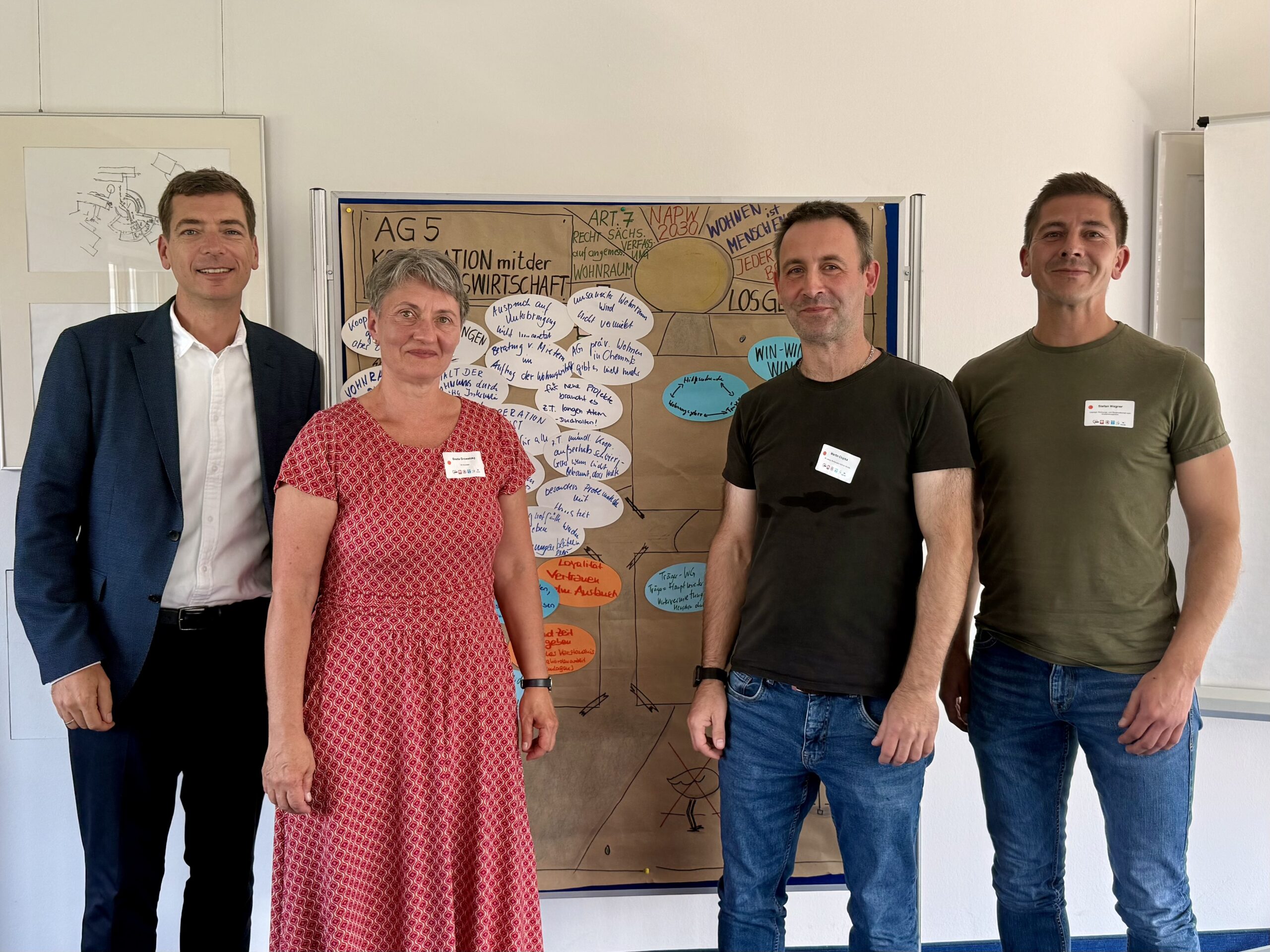 Deshalb war die Teilnahme an der Fachtagung Wohnungsnotfallhilfe heute in Dresden bei der Arbeitsgruppe Kooperation mit der Wohnungswirtschaft genau richtig. Es gibt Ideen und auch schon gelebte und funktionierende Projekte. Etwa die zwischen der Caritas, hier vertreten durch Martin Ciupka, und unserem Mitgliedsunternehmen, der Leipziger Wohnungs- und Baugesellschaft mbH (LWB), hier vertreten durch Stefan Wagner.